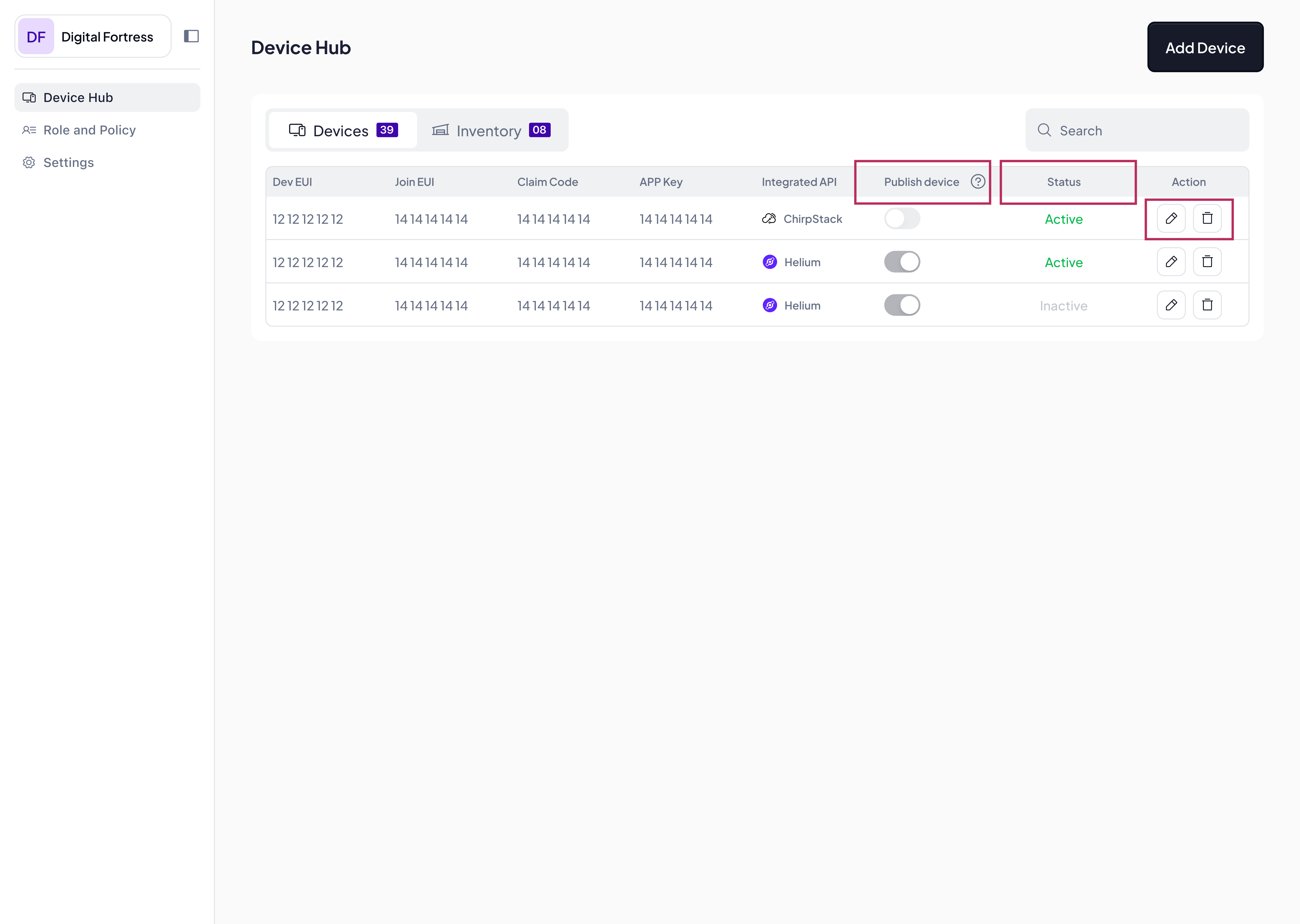 - Delete Devices: Use the delete (🗑️) icon to remove devices from inventory