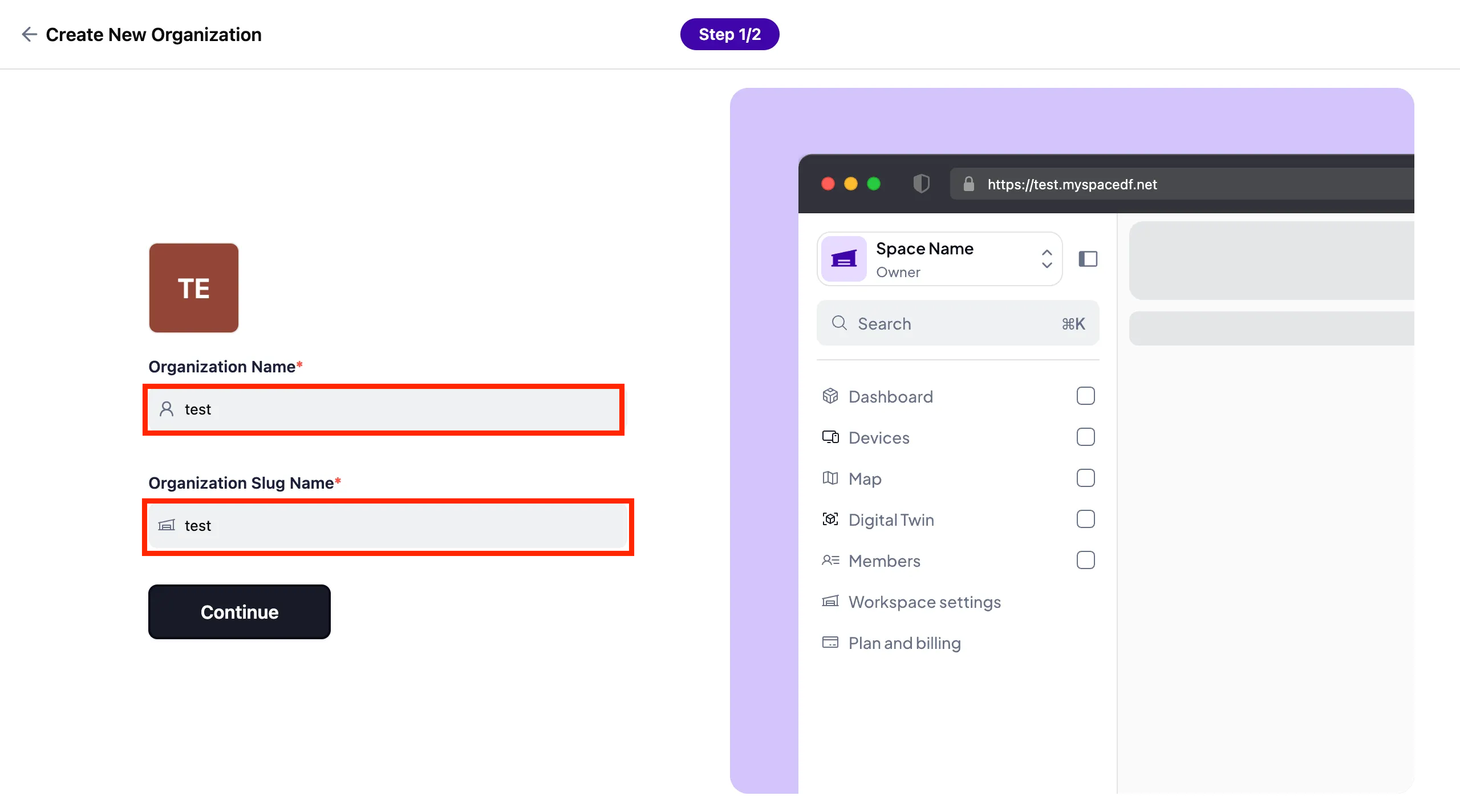 - Organization Slug Name: Auto-generated (unchangeable after creation)