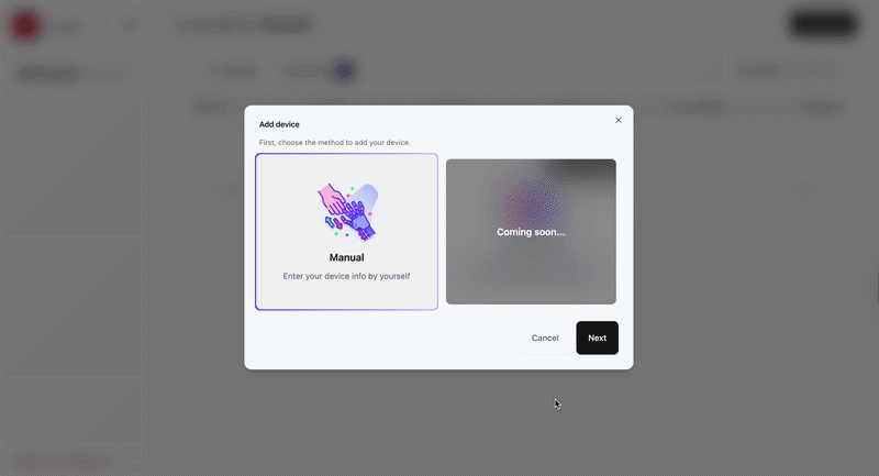 QR Code ScanManual Device Entry