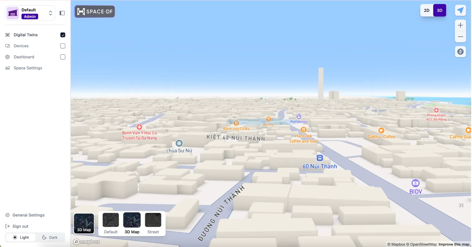 In case no devices have been added yet, you will see the map view with options for toggling between 2D / 3D views, as well as your current user location.