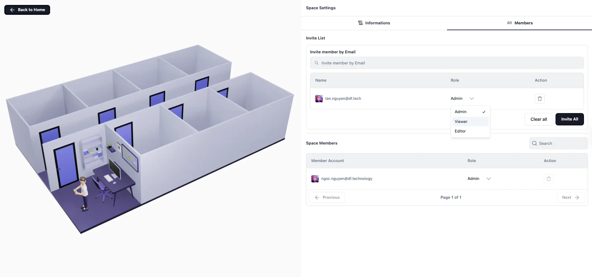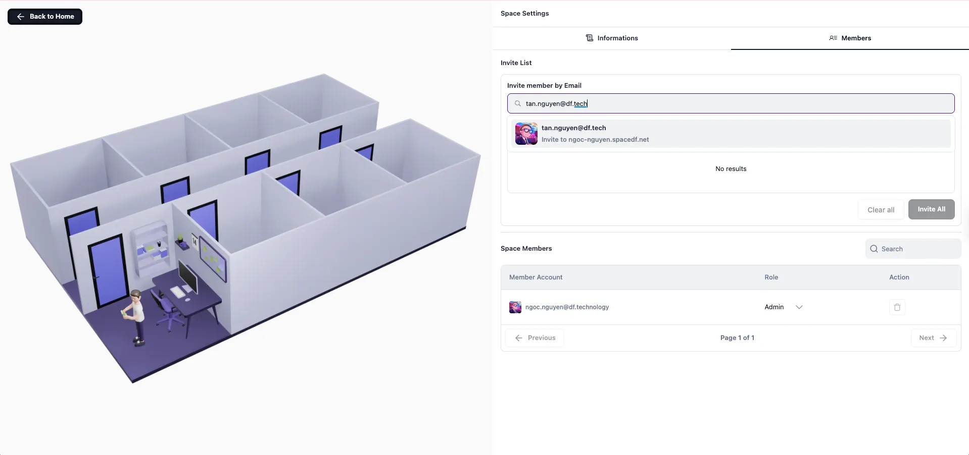 This section allows you to invite users, assign roles, manage existing members, and remove members from the Space.