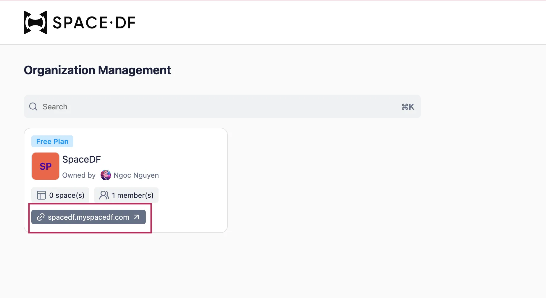 When an Organization is created, a Default Space is automatically generated. You can access the Default Space by clicking on the Slug URL on the Organization.