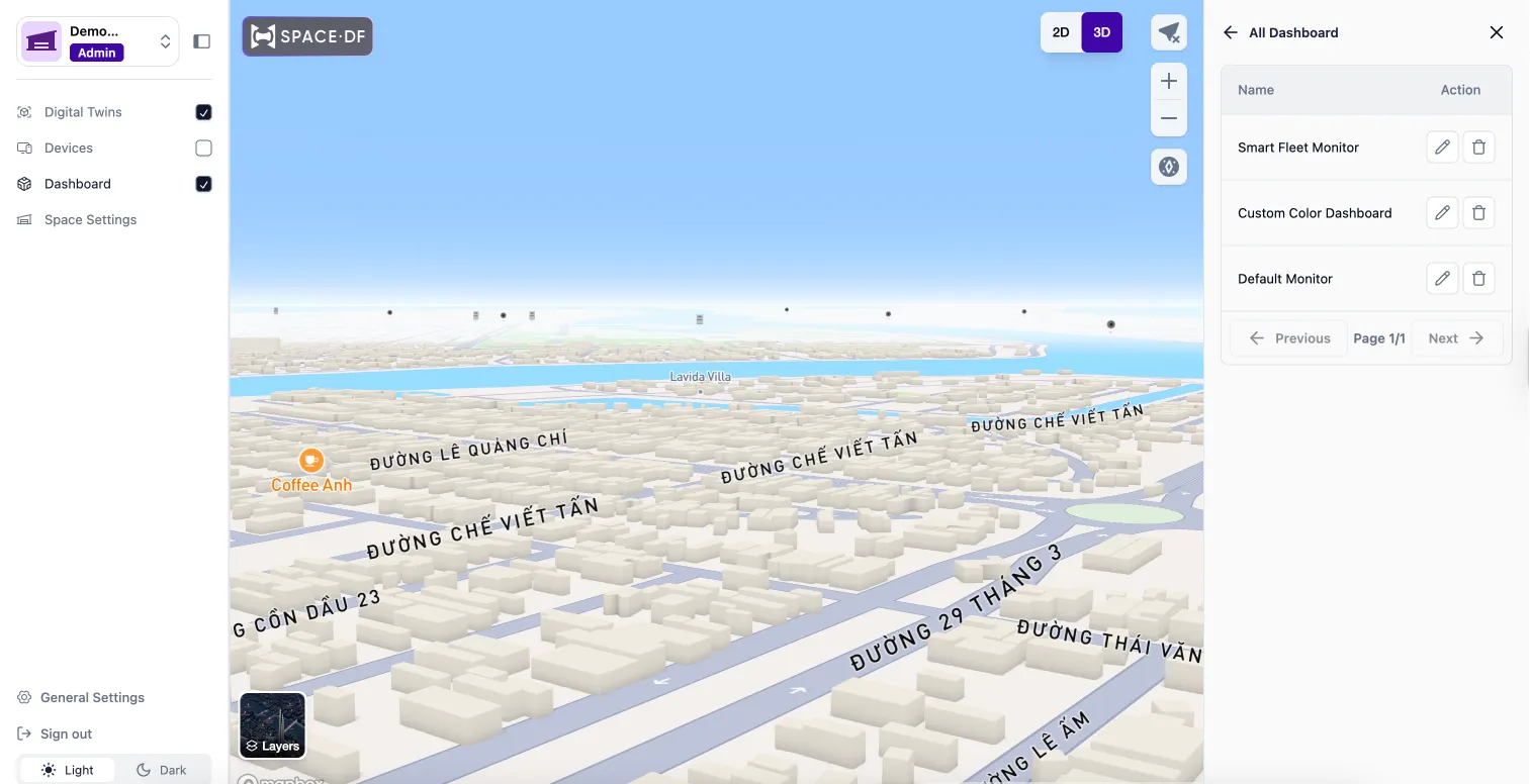A Space is a workspace within an Organization where devices are actively used and monitored in real-world use cases. This is where you track device status, view data, and interact with devices through a visual dashboard.